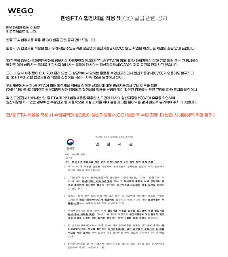 No.315  -수입통관 - 원산지증명서(CO) 발급 관련공지